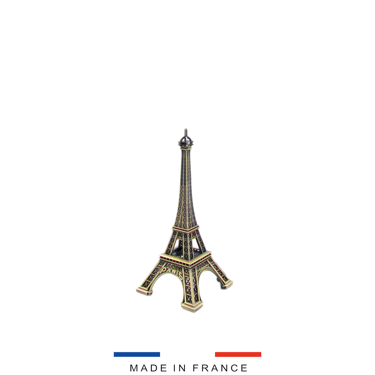 Cette petite Tour Eiffel est inoxydable (structure en Zamac) et se revêtit d'un habillement Bronze ou Vieil Argent.